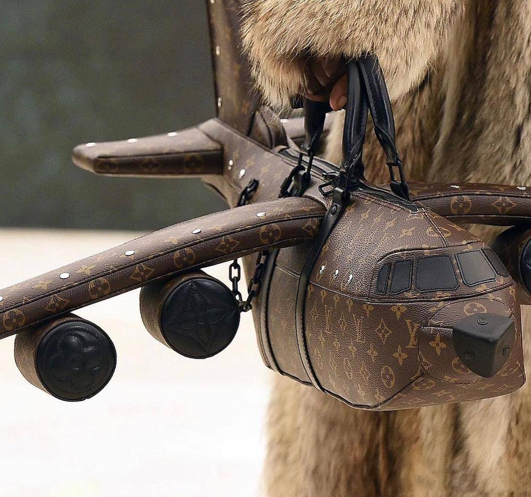 LV还在2021秋冬男装新品展现上发布了一款“飞机包”,一听姓名信任,这款包的外形模仿了实在的飞机,而且在细节处也处理得非常好,包含引擎、两边机翼和尾翼都完美模仿。