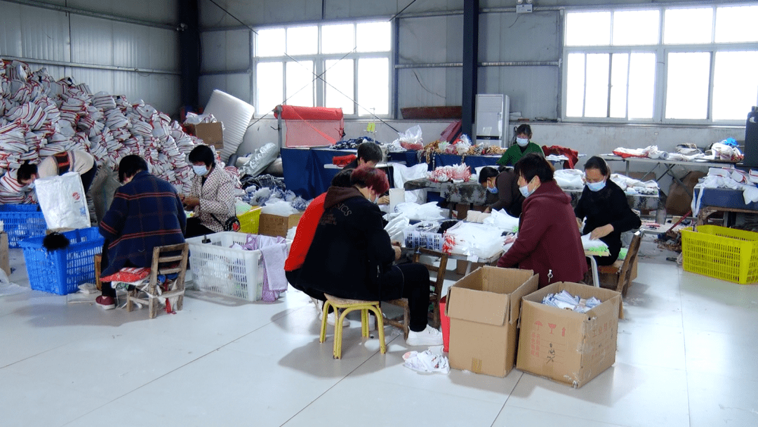 “我在这儿干活是计件的,多劳多得,一个月能拿到2000多块钱,离家也近,不耽搁照料老人和孩子,可得劲!”叶县辛店镇闫庄村工人周爱红快乐地说。