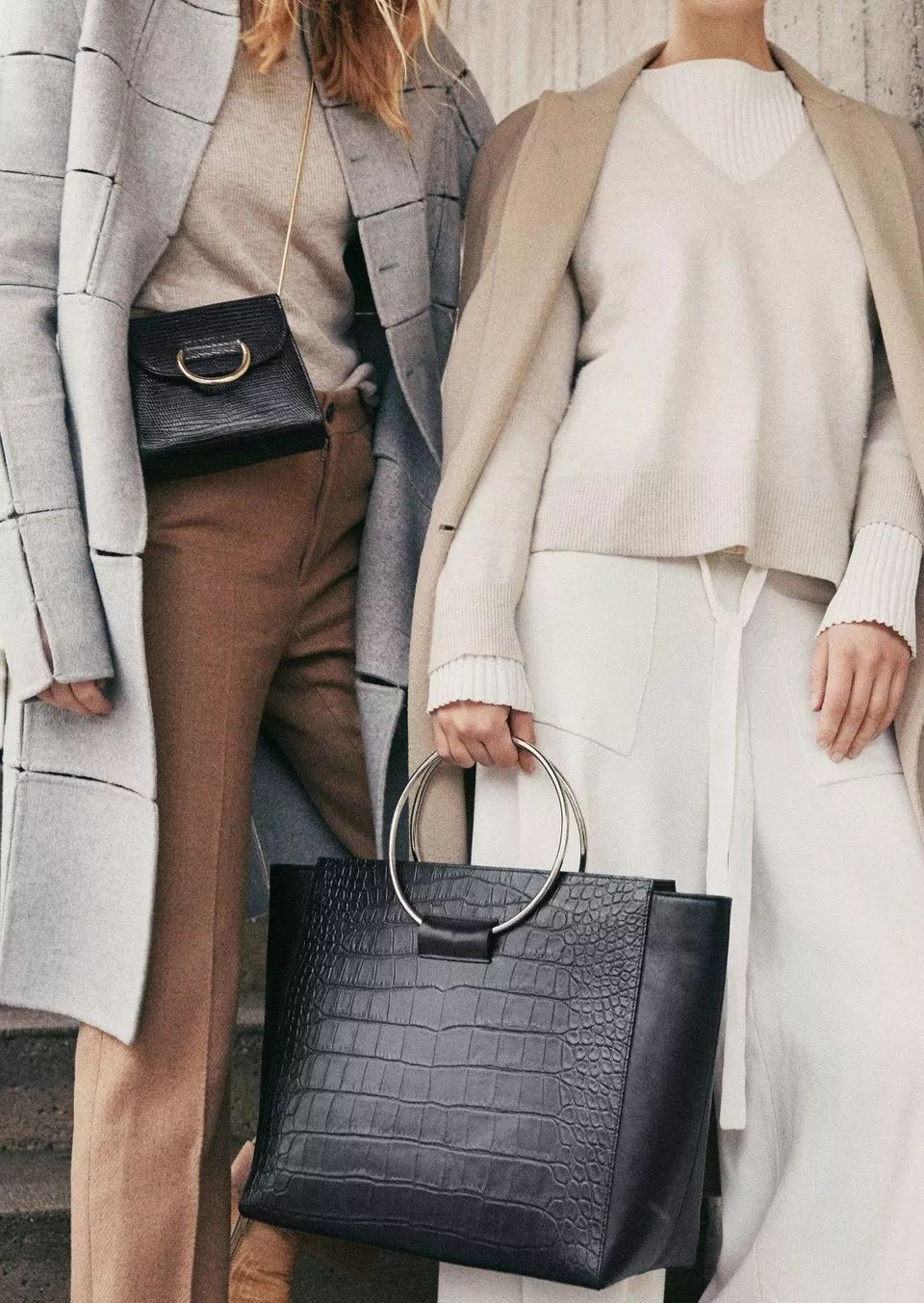 其中比较火的Twin Frame双色皮革手提包,对“拼色”与 “子母包”进行了重新定义。外置的拼色小包恰到好处的点缀了包袋,简洁而有力的展现出了线条的“理性”魅力。