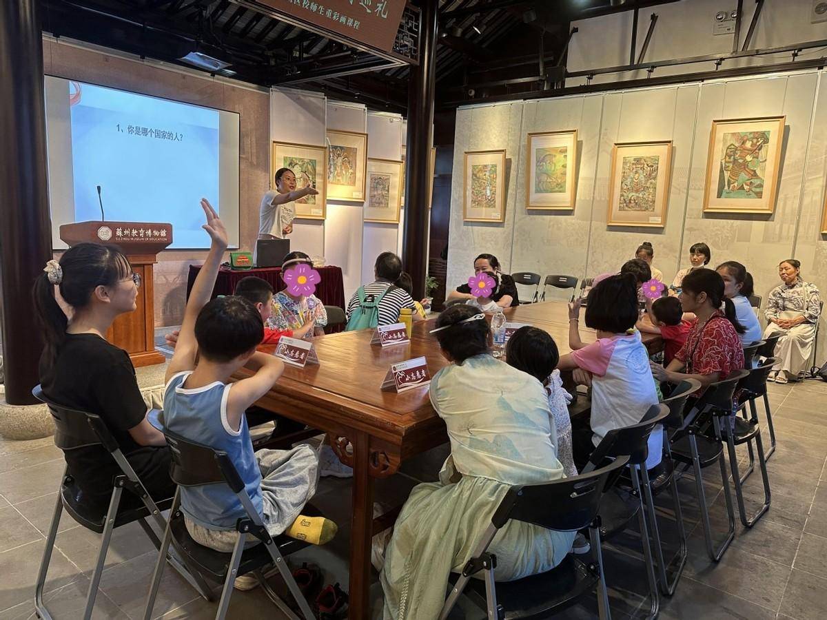 炎炎夏日阻挠不了孩子们参与活动的热心。一到教博馆,孩子们就被丰厚多样的文物、古色古香的修建所招引,刻不容缓地拉着爸爸妈妈去看馆内展品,而教博馆的教师和小志愿者们也早早做好了预备,等待着孩子们的到来。
