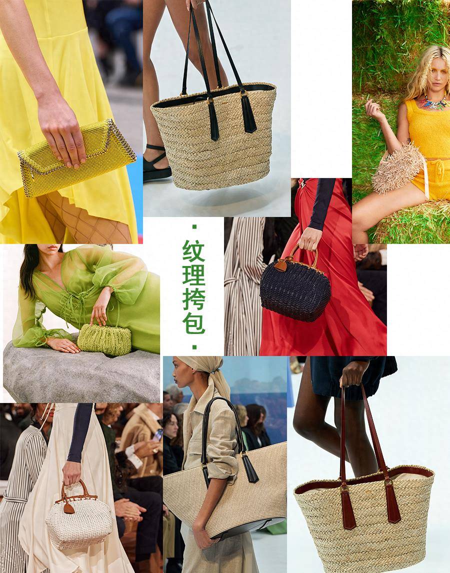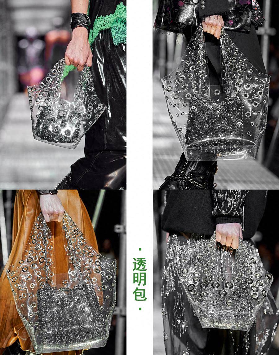 我们现在谈论的流行趋势来自春夏时装秀。我们找到了几个袋子。这些包包的材质、形状或者亮点是什么,我们接下来看看;