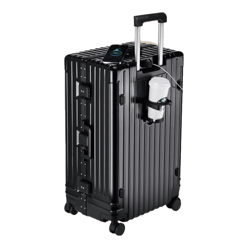 DULA行李箱采用五轮设计,承重更强,适合各种旅行需求。其后背折叠杯架设计,方便您在旅途中随时享用饮品。搭载的TSA密码锁,让您的出行安全更有保障。
