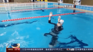 游泳教练 冯杰:比如手抽筋我们大家可以把手一收缩、打开,反复做几次就可以。脚的话一般是小腿容易抽筋,小腿抽筋的话,我们就把膝关节伸直,脚尖回勾,就是保持这个状态十秒左右,再做一次。伸直再回勾,十秒钟左右,反复做几次就好了。